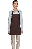 Standard bib apron with three divided 8" deep pockets. Adjustable neck. Extra long fabric matching ties.