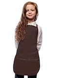 Child's standard bib apron with two divided pockets. Non-adjustable neck. Long fabric matching ties.